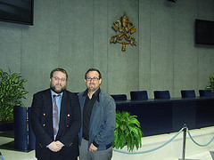 El martes tuvo lugar lo que humorísticamente llamo “visita ad limina” de InfoCatólica al Vaticano. Bruno y yo visitamos algunos dicasterios, algún consejo pontificio… nos trataron la mar de bien pero por razones elementales tengo que ser discreto sobre lo que ocurrió en dichos encuentros. Al finalizar los mismos, Andrés Beltramo tuvo la amabilidad de enseñarnos la Sala Stampa. Nos explicó cómo funcionan allá las cosas y nos presentó a algunos colegas de la prensa extranjera allá acreditados. Llegamos a hablar con un sacerdote responsable de la oficina, que tuvo a bien intentar averiguar -infructuosamente, por supuesto- de dónde habíamos sacado una de las primicias que hemos dado en InfoCatólica en los últimos meses. Por resumir un poco todo, digamos que de ahora en adelante se prestará más atención a lo que acá publicamos y opinamos.Al finalizar la mañana visitamos la Basílica de San Pedro. Allí rezamos ante la tumba del Beato Juan Pablo II. Teníamos algún encargo de oración “delicado". Sólo por eso habría merecido la pena ir a Roma.