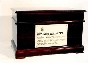 Enrique Beltrán Llorca, de 36 años (había nacido en Villarreal, Castellón, el 14 de noviembre de 1899), era novicio de la Orden Hospitalaria de los Hermanos de San Juan de Dios (Hospitalarios). Fue fusilado en Calafell (Tarragona) el 30 de julio de 1936, con 14 compañeros, y beatificado el 25 de octubre de 1992, dentro de la causa de 69 hospitalarios encabezada por los beatos Braulio María Corres Díaz de Cerio y Federico Rubio Álvarez.