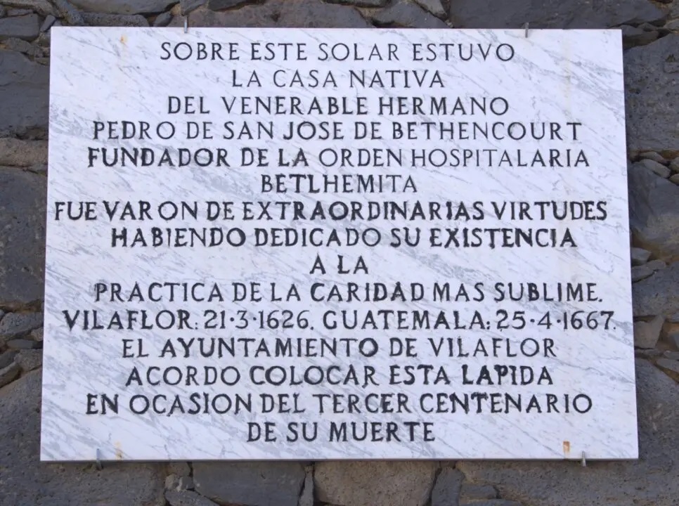 Placa conmemorativa de Pedro de San José de Bethencourt,