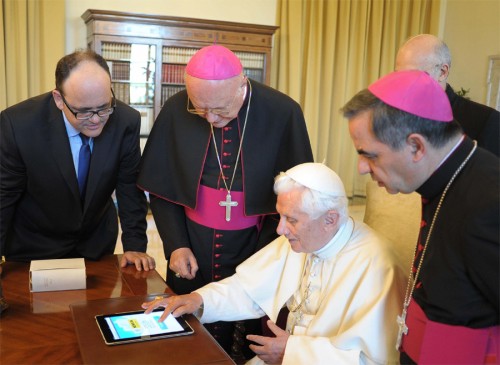Benedicto XVI es uno de los teólogos católicos más leídos del mundo. Sus libros han sido traducidos en decenas de idiomas y, varios de ellos, se han convertido en best-sellers. Ahora su pensamiento desembarcó en la última frontera tecnológica, los teléfonos inteligentes y las tabletas, gracias a una alianza editorial entre la Librería Editorial Vaticana (LEV) y el coloso de la informática Apple.