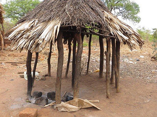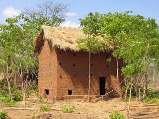 Yo estaba entusiasmado en sacar alguna foto a los hornos de tabaco, así que cuando vi un par que estaban muy nuevos y lindos, me detuve, y justo me dice Filipo que es la casa del mwenyekiti, o líder de la capilla católica: Mikaeli. En eso, nos saluda Mikaeli desde lejos, nos reconoce, y comienza a venir hacia nosotros. Estaba herido en una pierna, debido a una caída reciente en la moto. Nos pregunta la razón de nuestra visita y al enterarse que íbamos a ver a este enfermo, se sumó al grupo. Otro detalle mas, ya que si hubiéramos venido en moto, también nos perdíamos de esta compañía y apostolado.Unos minutos mas tarde llegamos a la casa del enfermo. La disposición de la casa, la cocina, etc. como es común en estos lados (les mando fotos: casas de barro, techo de paja, bajas, algunas casas cuadradas, otras en forma redonda). Clementi, que así se llamaba el enfermo, estaba postrado en un colchón muy pobre, puesto directamente en el piso. La casa de barro… sin puerta, y muchas cosas guardadas en la misma habitación.