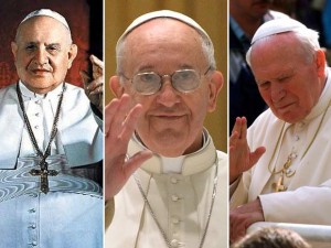 Dos Papas. Dos “juanes". Juan Pablo II y Juan XXIII serán elevados al honor de los altares juntos. Será durante una misa ceremonia de canonización que tendrá lugar en Roma el próximo 27 de abril, el Domingo de la Divina Misericordia 2014. El segundo domingo de Pascua. Así lo estableció este día Francisco durante el primer Consistorio Ordinario Público de su pontificado. Se espera una ceremonia espectacular, digna de tres papas muy taquilleros.