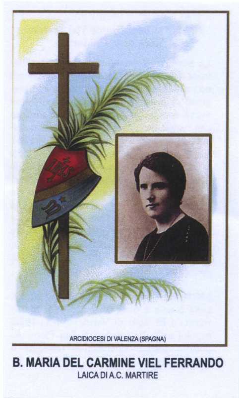 María del Carmen Viel Ferrando, suecana de 42 años, Colaboró intensamente en la fundación en Sueca de la Acción Católica, la Congregación de la Doctrina Cristiana y en la creación de un Colegio de Religiosas, dedicado a la enseñanza de niños pobres. Previamente, fue una de las fundadoras de la obra Intereses Católicos, precursora de la Acción Católica, y trabajó para dar vida a un Sindicato Laboral de Corte y Confección.A instancias de María Lázaro, Rosalía Roglá y Manuel Pérez Arnal, promotores del Sindicato de la Aguja, fue a Barcelona,para estudiar allí más libremente la Obra Social. Escribió a la provincial de las Hijas de María Auxiliadora hasta conseguir que fueran a Sueca para educar a las jóvenes obreras.
