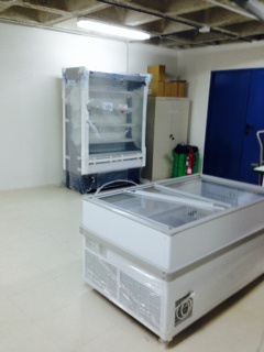 La foto es de esta misma mañana. Lo que era un enorme almacén de alimentos para entregar gratuitamente a familias del entorno se encuentra vacío ahora mismo esperando las estanterías. En la foto puede verse ya la gran “isla” para congelados y el armario frigorífico para productos refrigerados. En apenas tres semanas abrirá sus puertas el economato solidario “TRES OLIVOS” que Cáritas parroquial de esta parroquia de un servidor pone en funcionamiento gracias al apoyo económico de la financiera francesa Natixis.