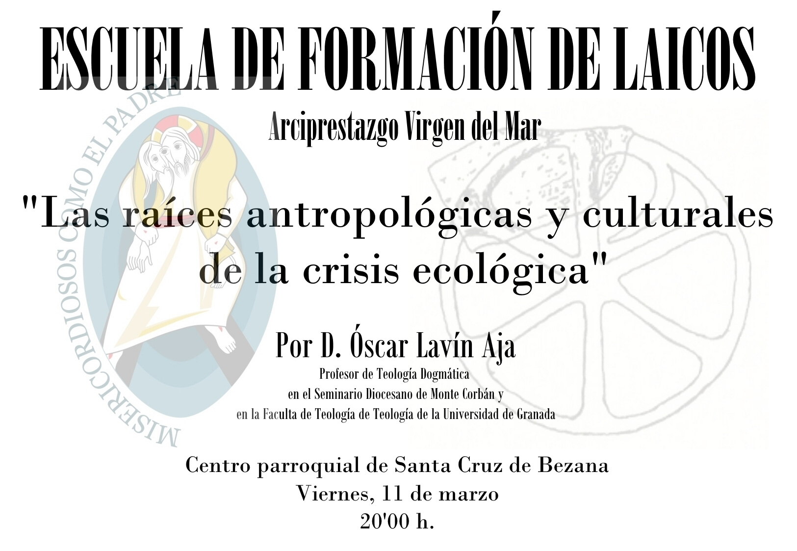 Quinta sesión de la Escuela de Formación de Laicos del Arciprestazgo Virgen del Mar, que tendrá lugar en el Salón Parroquial de Santa Cruz de Bezana el próximo VIERNES 11 de MARZO, a las 20:00 horas, con la ponencia: