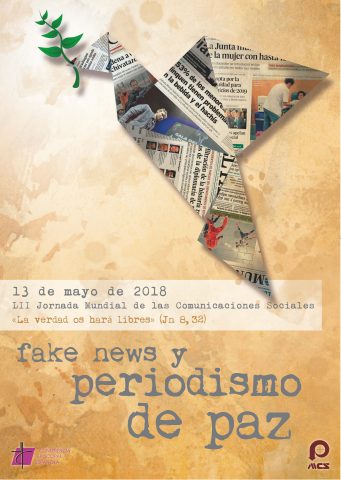 En la solemnidad de la Ascensión del Señor, este año el domingo 13 de mayo, se celebra la Jornada Mundial de las Comunicaciones Sociales. El papa Francisco ha elegido para esta ocasión el lema, “«La verdad os hará libres» (Jn 8, 32). Fake news y periodismo de paz”. Y en su mensaje quiere ofrecer “una aportación al esfuerzo común para prevenir la difusión de las noticias falsas, y para redescubrir el valor de la profesión periodística y la responsabilidad personal de cada uno en la comunicación de la verdad”. En la CEE, difunde esta Jornada la Comisión Episcopal de Medios de Comunicación Social.