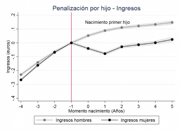 Kleven concluye, además, que esa brecha salarial constituye un 20% menos de ingresos. El estudio se centraba en Dinamarca, pero estudios similares han concluido similares porcentajes en países como Reino Unido, Suecia, Alemania o Estados Unidos.