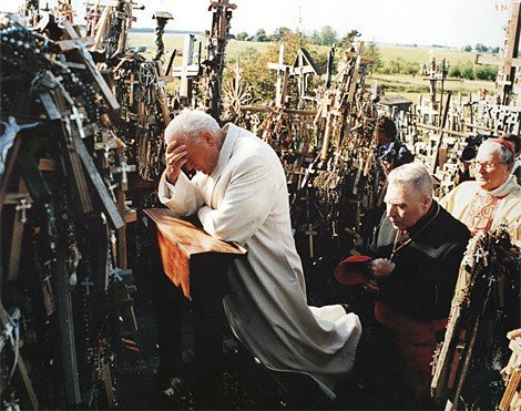 Juan Pablo II rezando en la Colina de las Cruces (Lituania) el 7-IX-1993.