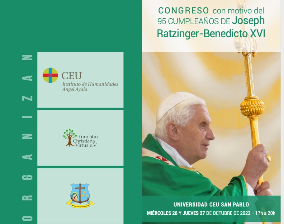 El Instituto CEU de Humanidades Ángel Ayala y la Fundación Christiana Virtus organizan un Congreso con motivo del 95 cumpleaños Joseph Ratzinger-Benedicto XVI. La anfitriona será la Asociación Católica de Propagandistas (ACdP) y se celebrará los próximo 26 y 27 de octubre.