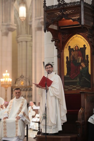 En el presbiterio, el altar, el ambón y la sede, constituyen una unidad representan a Jesucristo Buen Pastor, Sacerdote que santifica, Maestro, y Rey que gobierna los corazones: es el Modelo para todos sus ministros en la Iglesia al servicio de la unidad, como ha manifestado el nuevo arzobispo que cuenta con la oración y la comunión eclesial de los fieles.