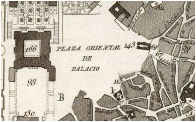 Entorno de la Plaza de Oriente en el plano de Juan López. 1812.