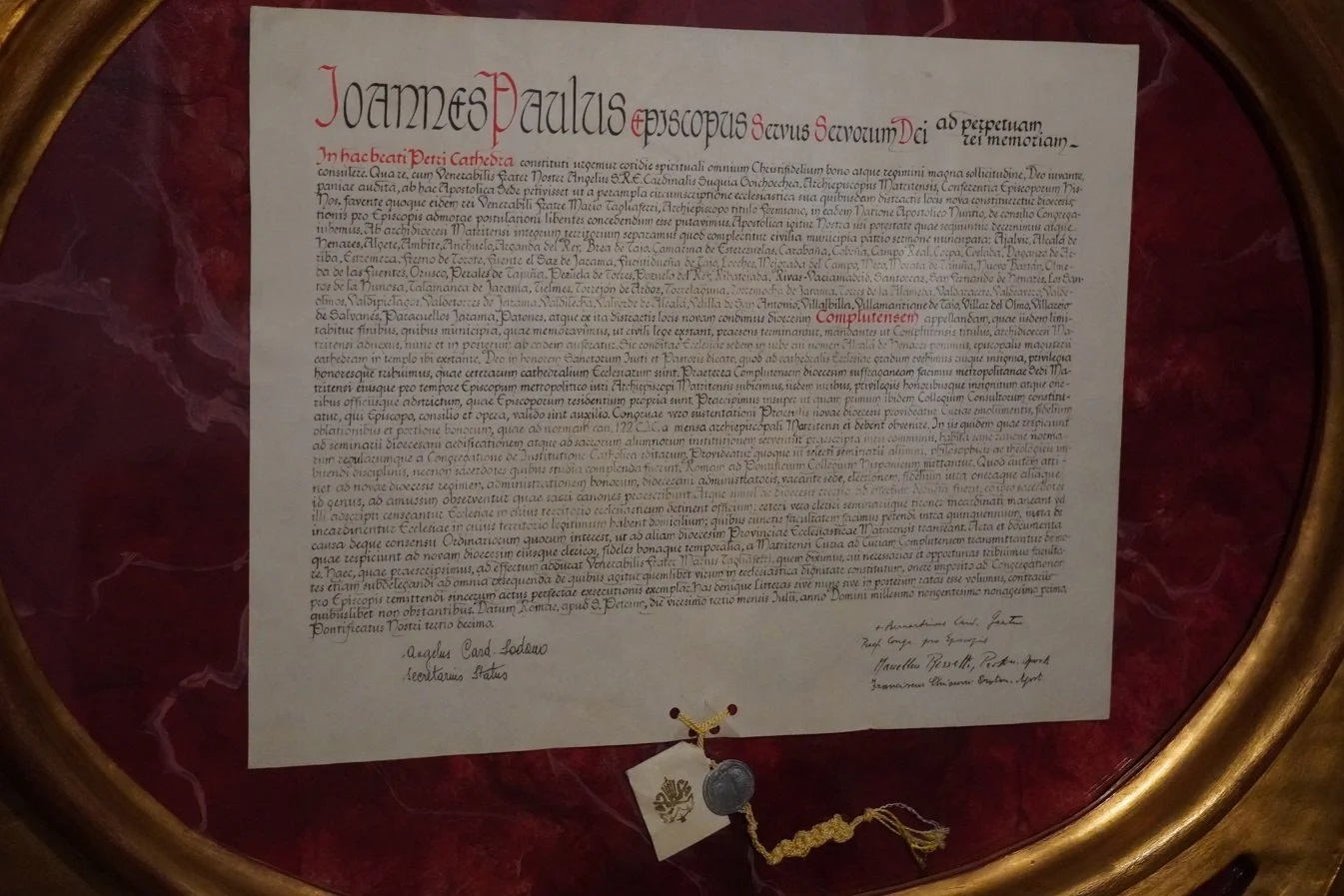 La bula por la que el Papa Juan Pablo II restauró la antigua diócesis complutense