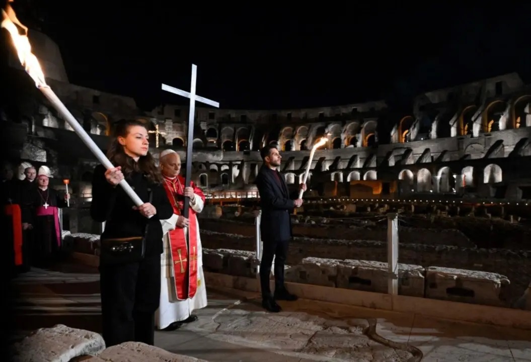 Vía Crucis en el Coliseo presidido por el Papa León XIV,